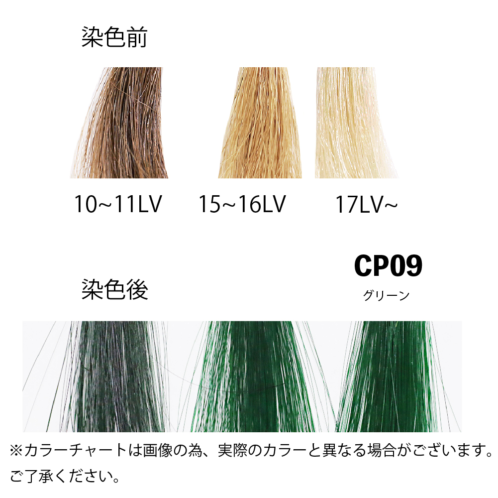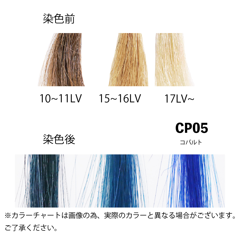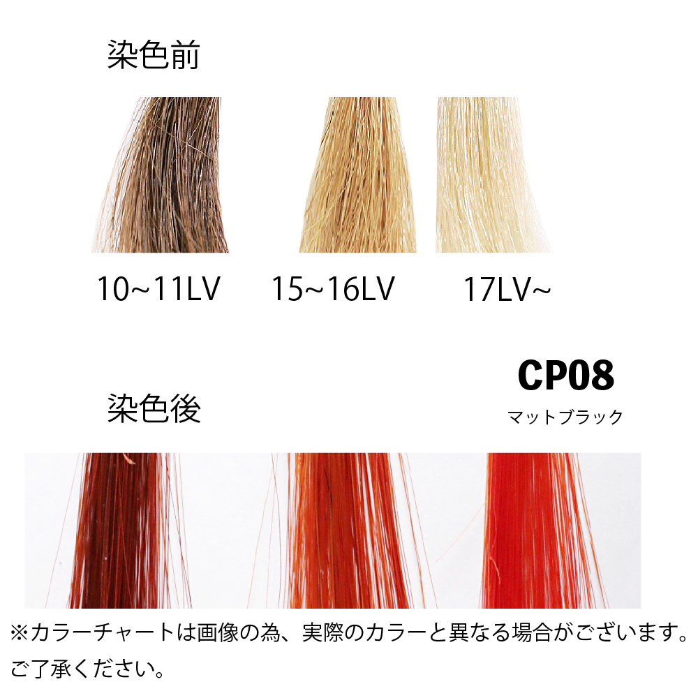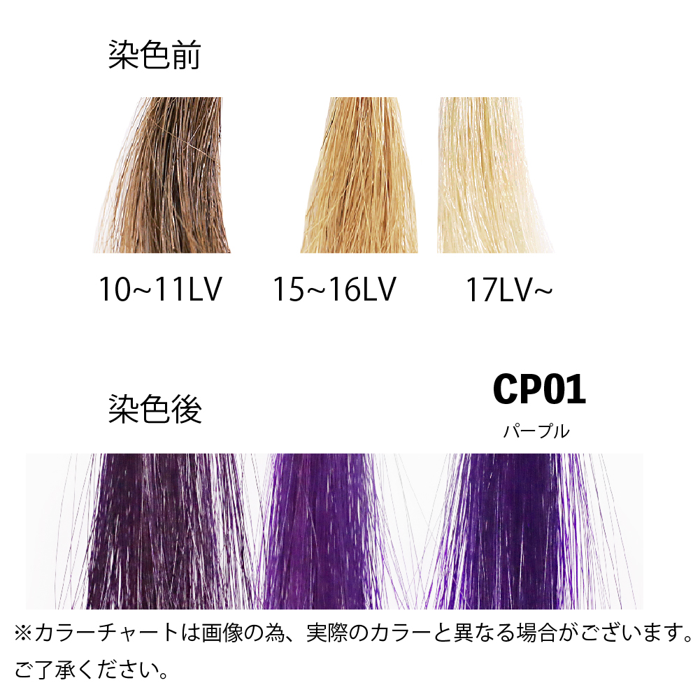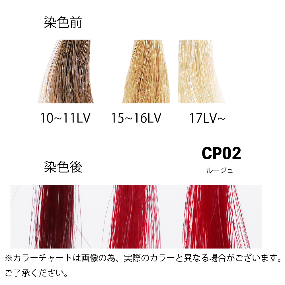 ◎事前にブリーチなどで髪を明るくしておく(カラーレベル13以上)と発色が良くなります。薄い色味に仕上げる場合はカラーレベル17以上(より白に近い色)にしておくことをお勧めいたします。