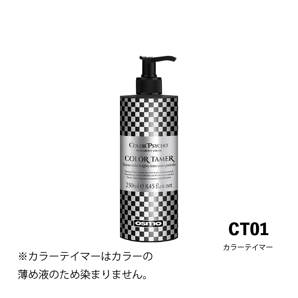 カラーテイマーを使用し色を薄める際は、カラーサイコ?の原液の色がとても濃い為、カラーテイマーの分量を少し多めに入れ、お好みの色になるまで調節し、目立たない部分でテスト後にご使用ください。