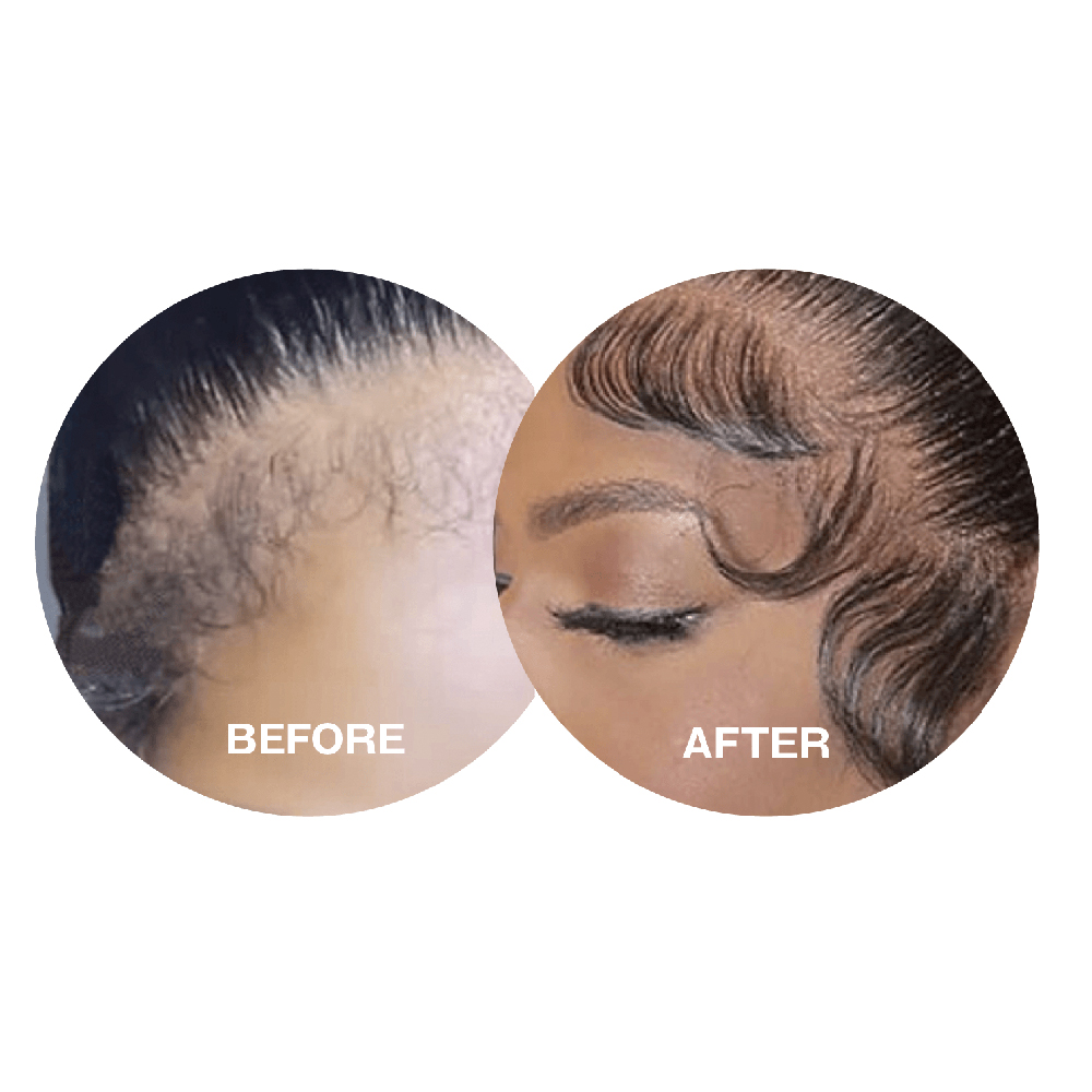 ◎アレンジしたいうぶ毛を整えます。ブラシ部分でうぶ毛にジェルをつけ、コーム部分でスタイリングします。手指を使用して整えると、うぶ毛が固定されやすくなります。