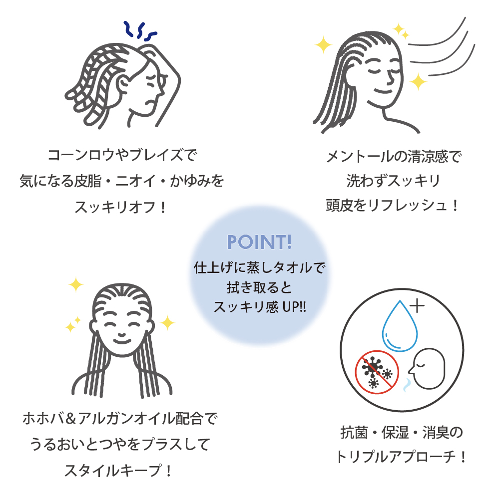 シュッとひと吹き!頭皮を簡単リフレッシュ! ブレイディングヘア用(ブレイズ・コーンロウ・ドレッド)