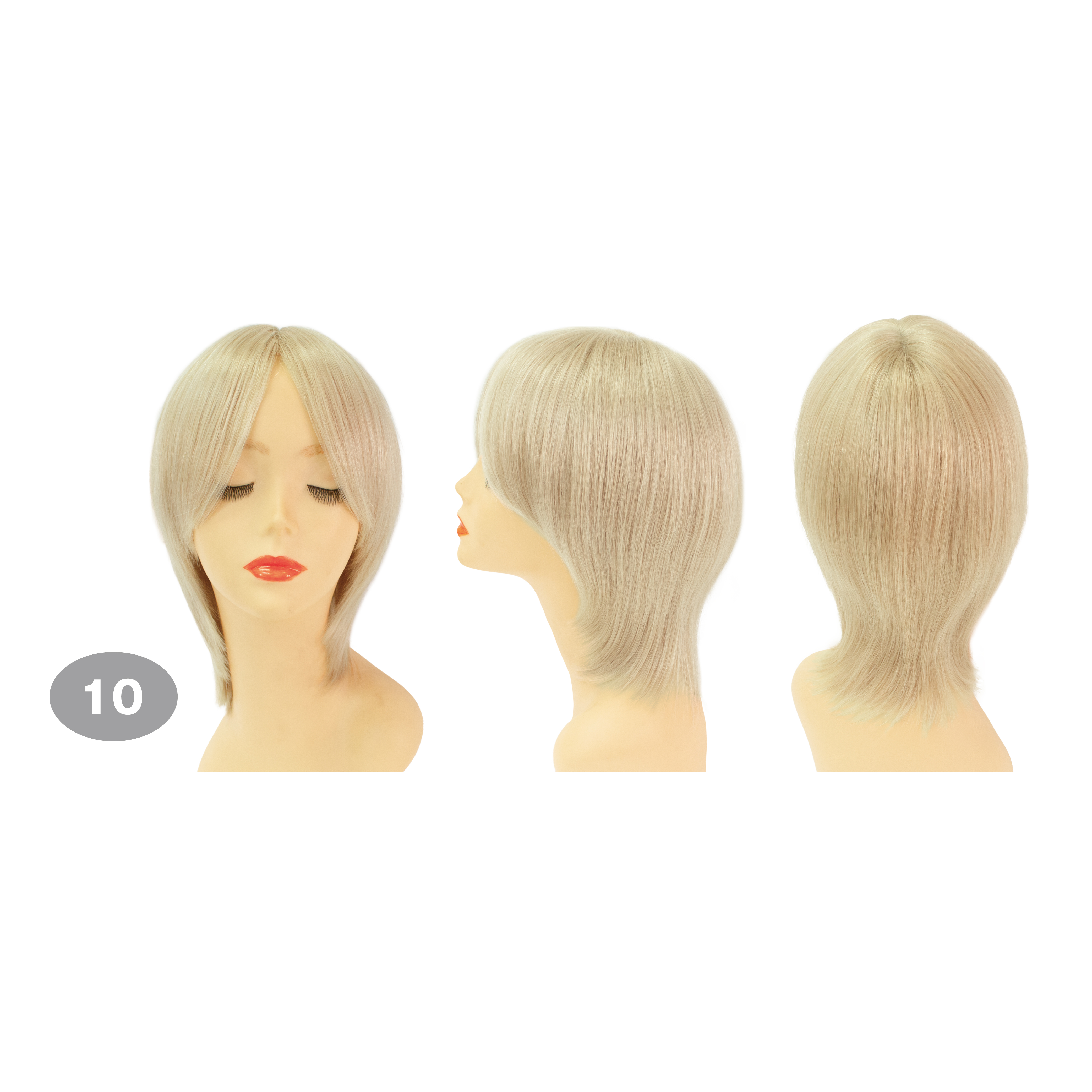 トップが短めの人毛ショート。前髪は鼻先まで、襟足は少し長め。ショートカットのアレンジに最適。
