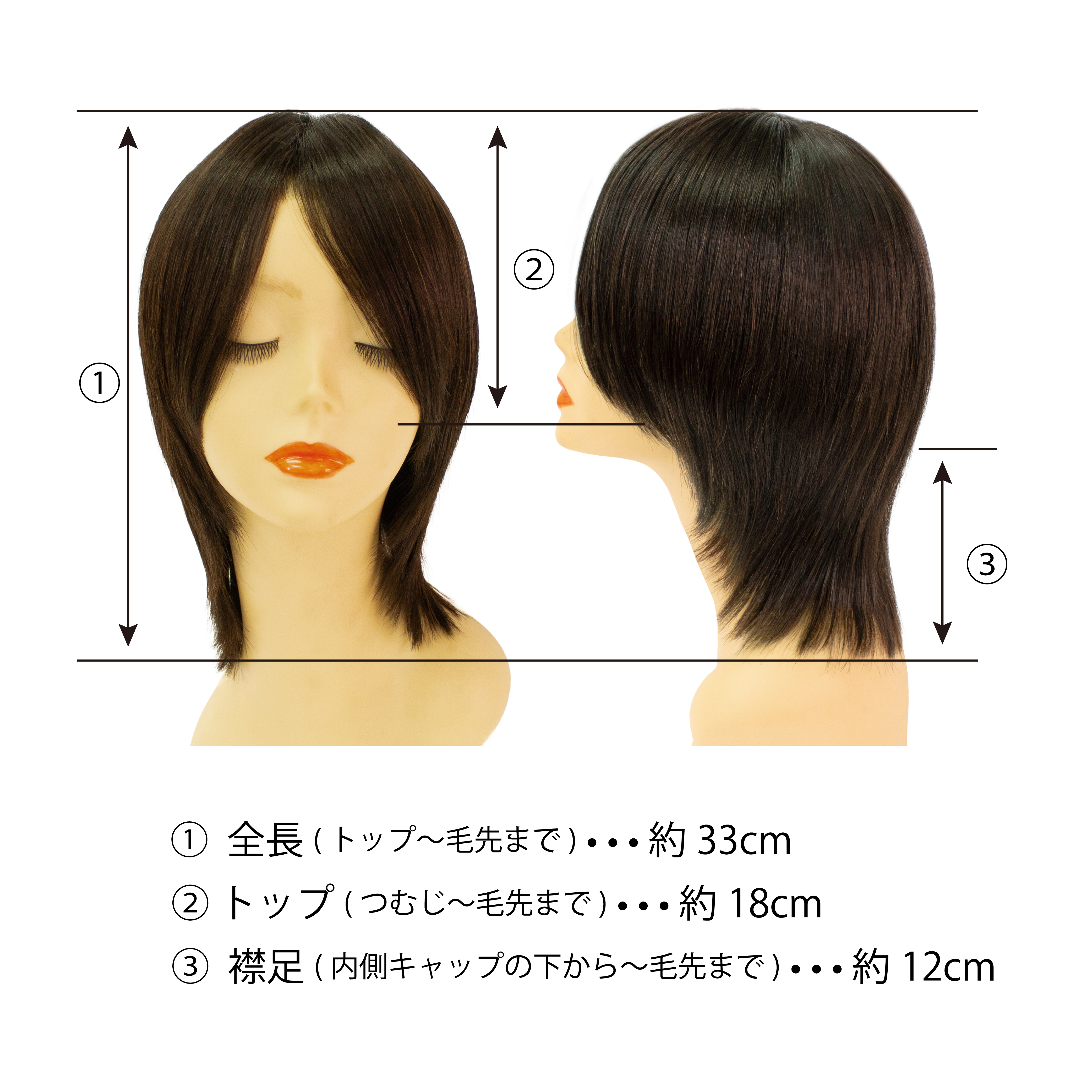 【サイズ】全長:約33cm トップ:約18cm 襟足:約12cm