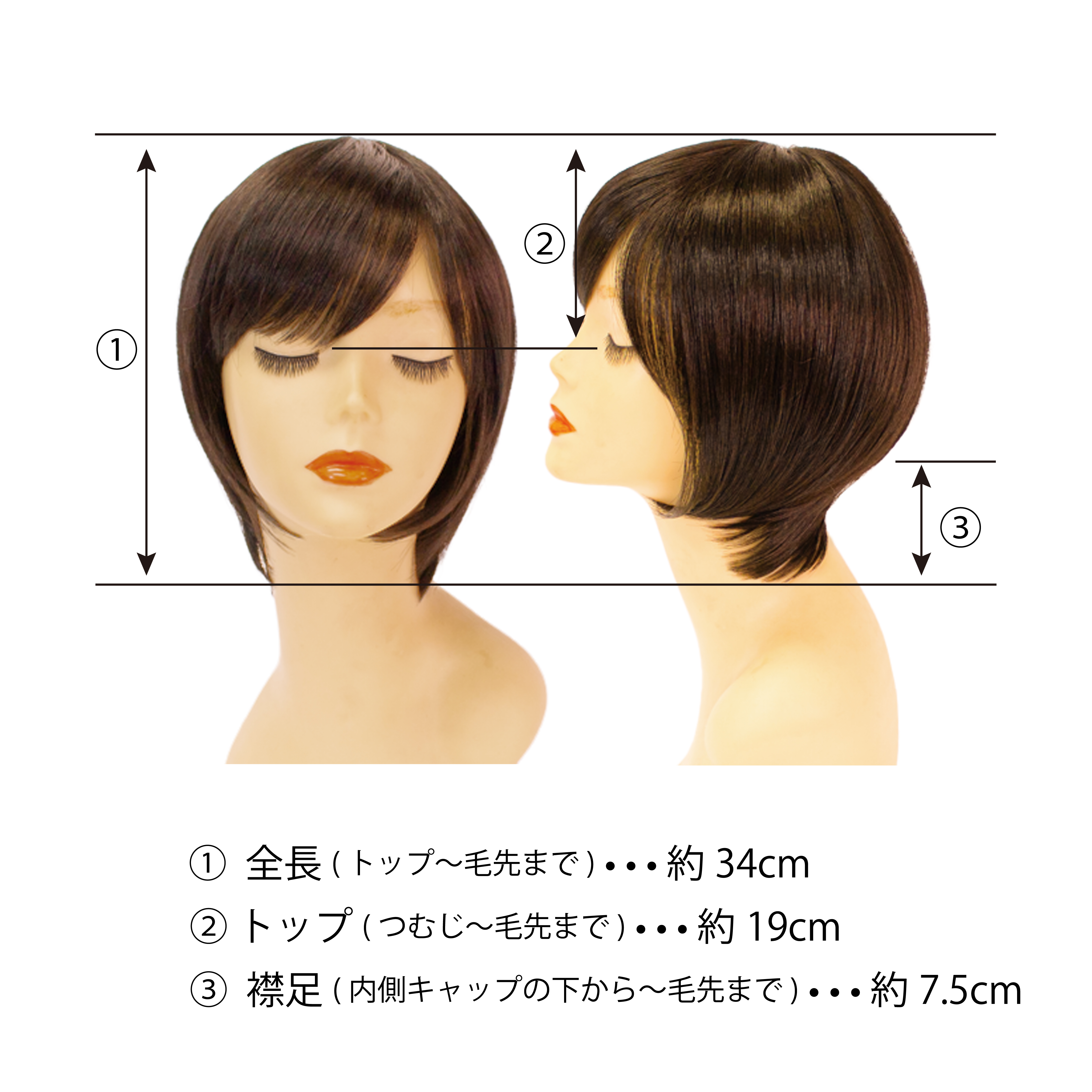 【サイズ】全長:約34cm トップ:19cm 襟足:約7.5cm