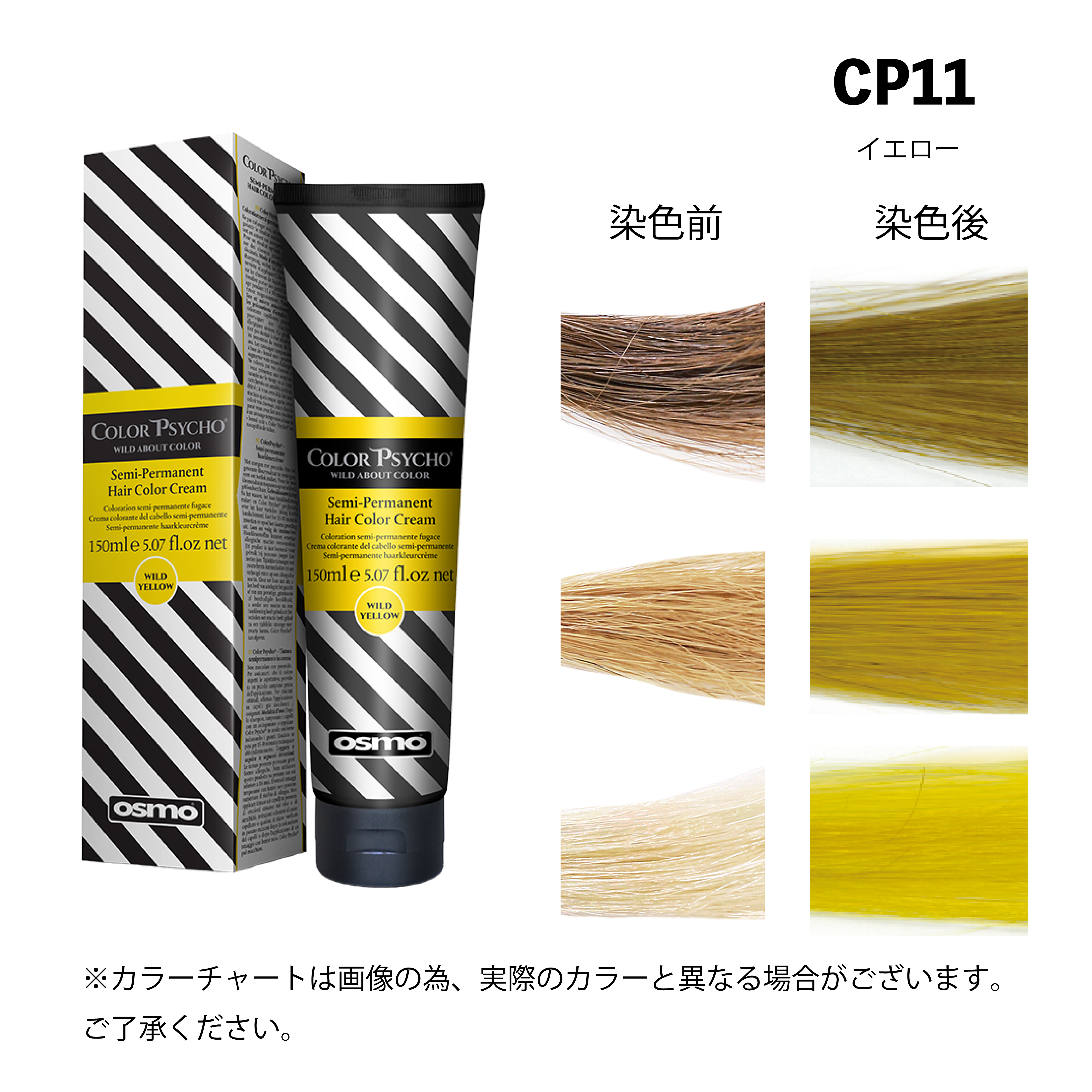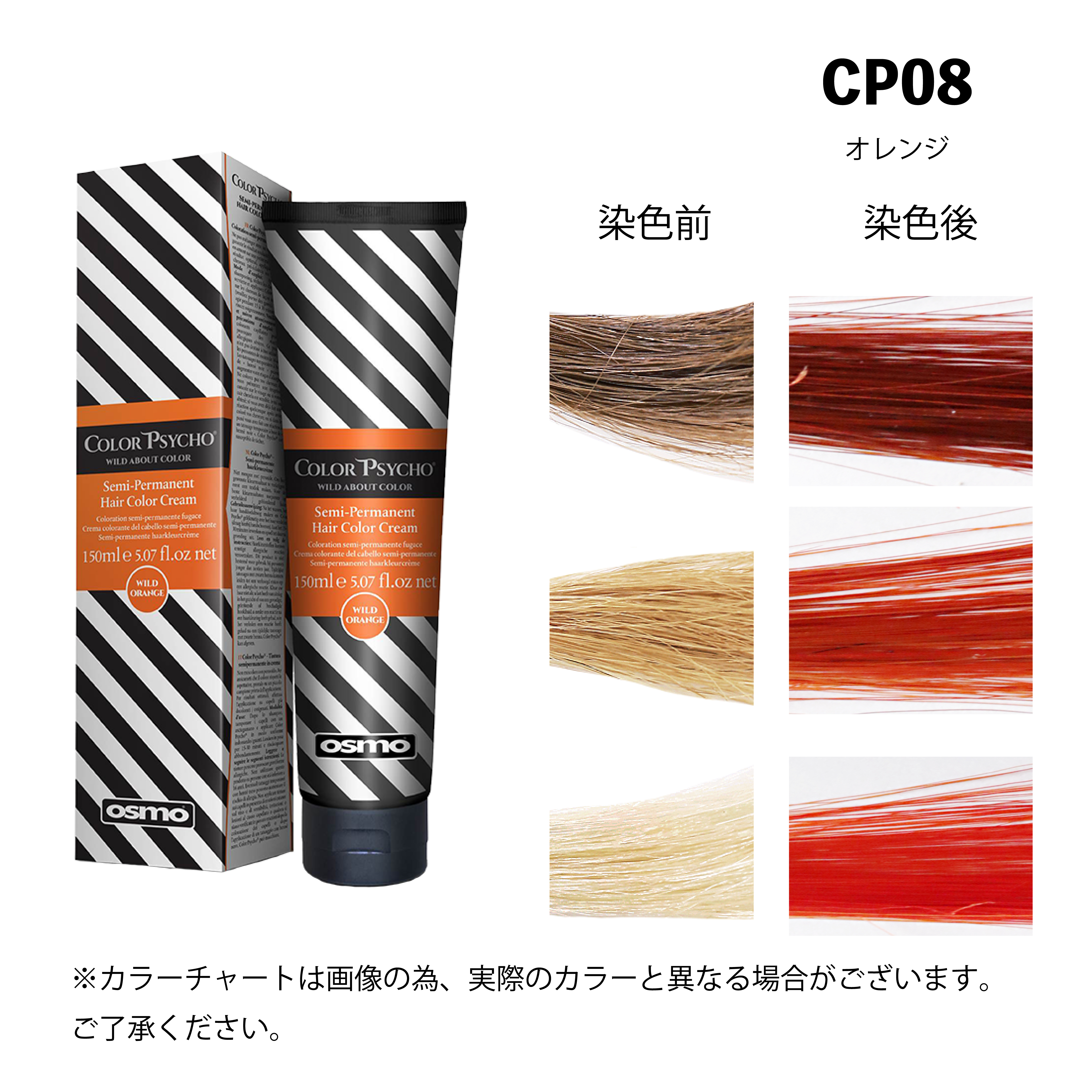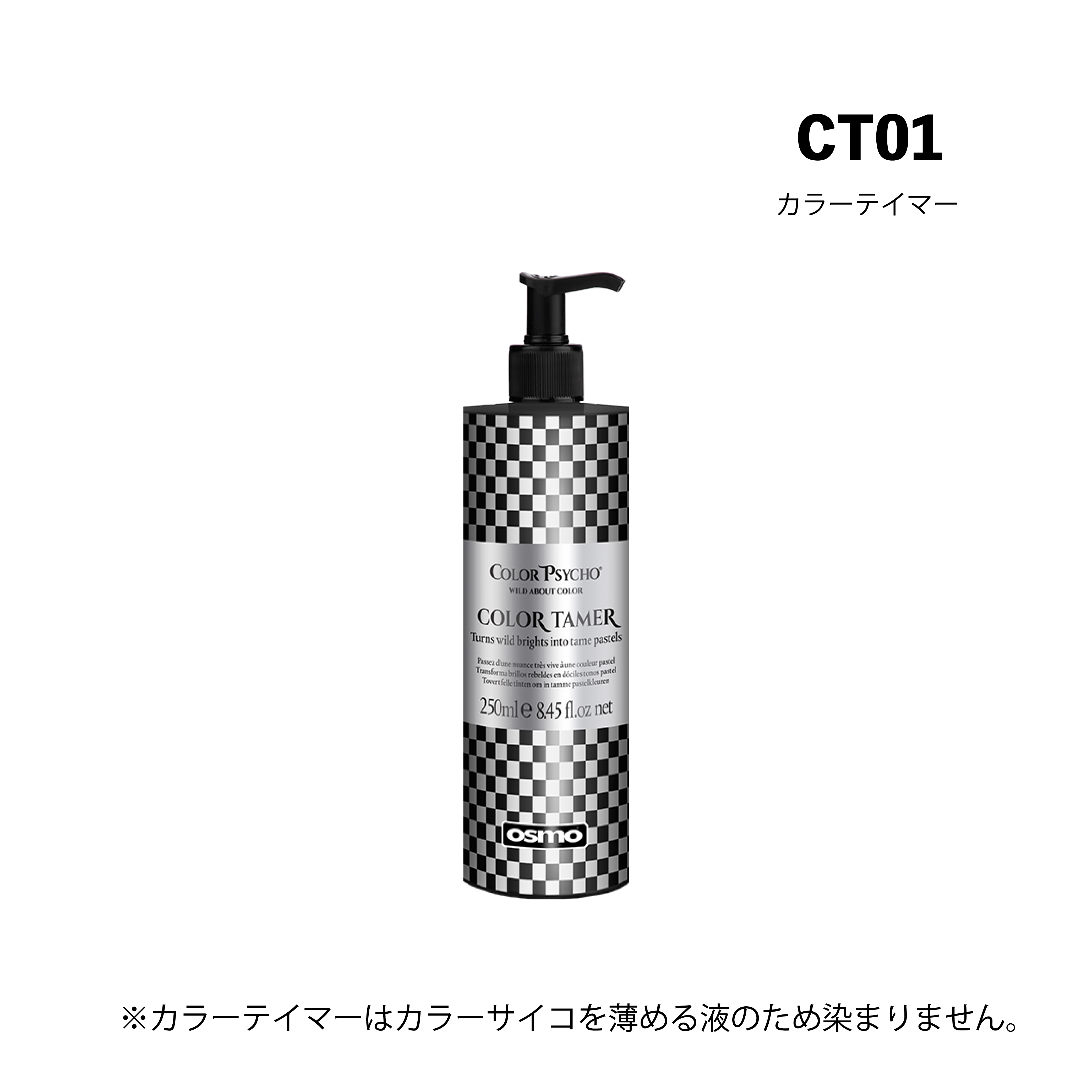 カラーテイマーを使用し色を薄める際は、カラーサイコ?の原液の色がとても濃い為、カラーテイマーの分量を少し多めに入れ、お好みの色になるまで調節し、目立たない部分でテスト後にご使用ください。